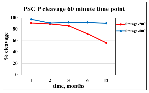 CLEAVAGE EFFICIENCY | 20 ug protease will digest 2 mg protein with 99% efficiency at 4°C in 60 minutes.
